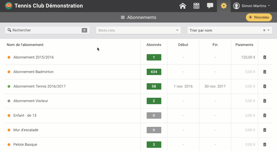 The list of subscriptions now takes up the entire width of the screen, and additional columns have been added, such as the default subscription dates and the total amount of payments: