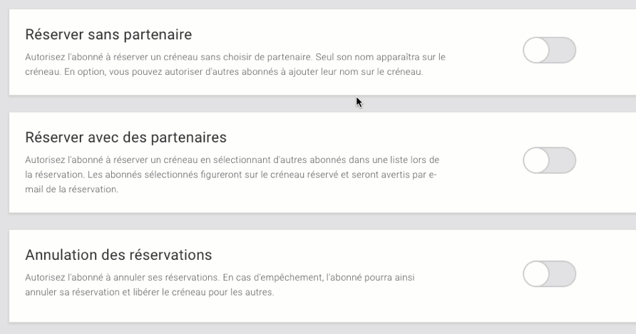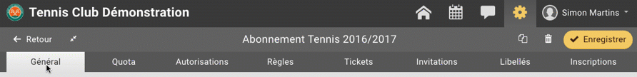 Subscriptions" (menu Administration > Users) gathers all settings related to reservation rights. This is where you can define the reservation quota, the number of days to reserve or add rules to prohibit certain time slots from being reserved.